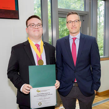 While the 2025 Outstanding Senior in International Security and Law might have graduated into a promising job in their chosen field, Stolzenfeld felt more knowledge and preparation was called for. In fact, the Honors College and University Scholars alum said the driving force to pursue a master’s degree in international security at the Schar School was the professors.